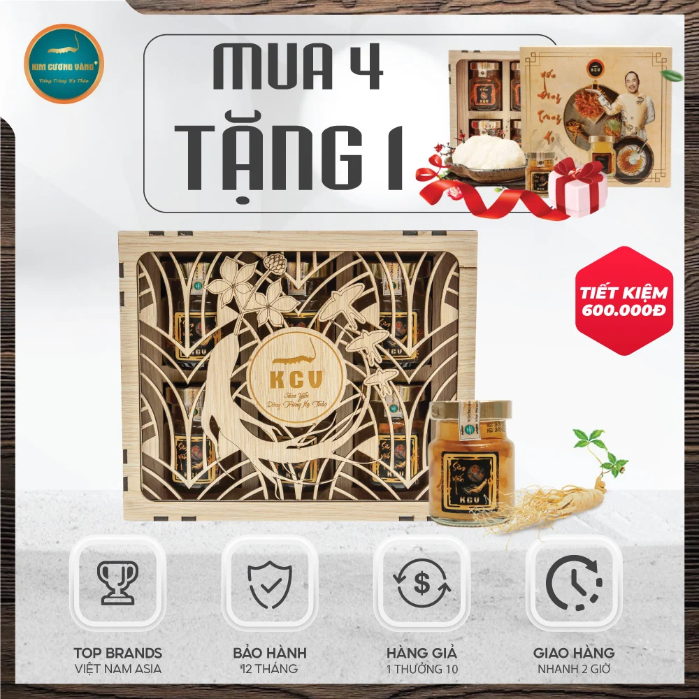 Ưu đãi mua 4 Hộp Yến Sâm DTHT (Hộp Gỗ) tặng 1 Hộp Yến DTHT (Hộp Giấy). Miễn phí giao hàng toàn quốc