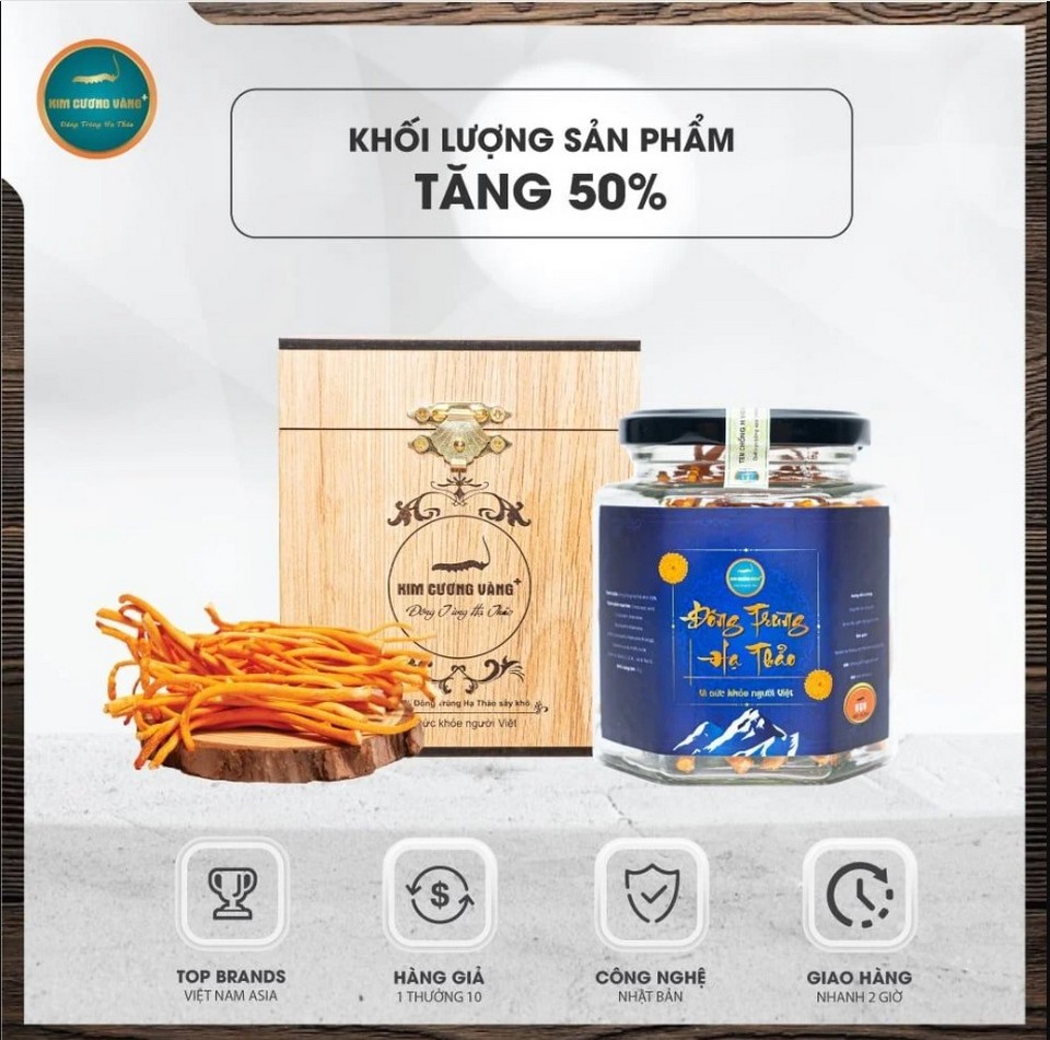Sản phẩm Đông Trùng Hạ Thảo Kim Cương Vàng hộp 15g với khối lượng tăng thêm 50%. Sử dụng nhiều hơn, tiết kiệm hơn và nhận được nhiều ưu đãi hơn