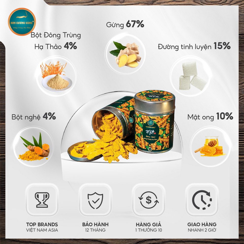 Mứt Gừng Nghệ Đông Trùng Hạ Thảo (Hộp 180g)